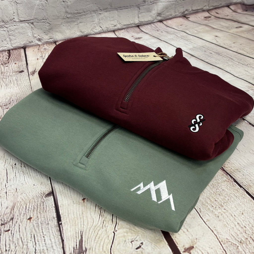 Spoke & Solace Monochrome - Embroidered Left chest - 1/4 Zip Sweatshirt